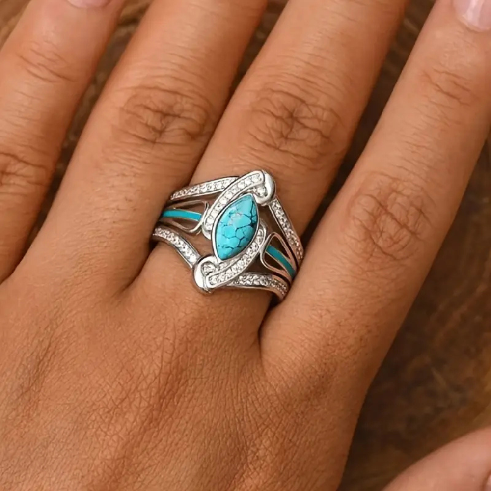 The Cyclone Turquoise Ring is a beautiful piece that captures the swirling energy of nature’s power. Its vibrant turquoise stone wrapped in a flowing design creates a look that feels bold and full of life.
