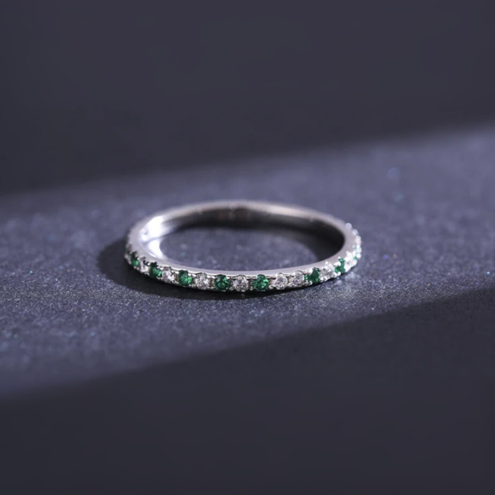A: The Onyx Band Ring is made from high quality 925 sterling silver, and highly-durable synthetic zirconium oxide.